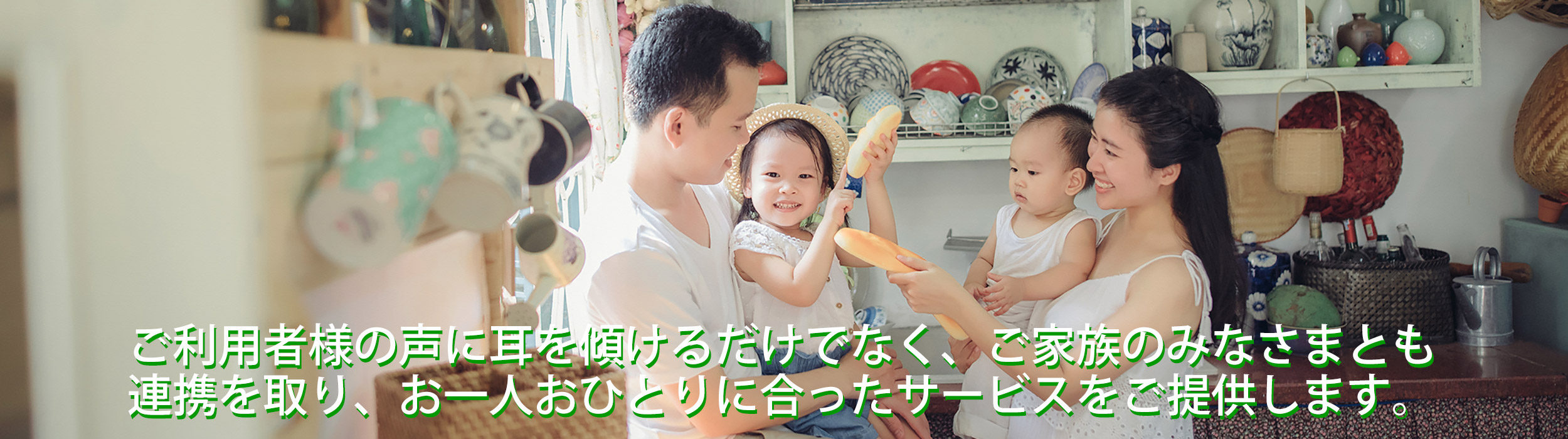 わたしたちの事業所では高齢者の在宅支援のみならず、障がいを抱えたお子様の介護にも取り組んでいます。地域で生活するご利用者様とそのご家族を支えてゆくことは、簡単ではありませんが、皆様のお力になれるようスタッフ一同努力してまいります。